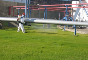 For several years, Turf Europe personnel has been entrusted by the DAFE (Department of Agrriculture, Food and Environment) of the University of Pisa, to monitor the green cover within the ENI refinery in Livorno. In such a high-risk environment, vegetation control is of the utmost importance: plants must persist (in order to keep reservoir containment banks compact and to capture fine dusts), but in summer they must be kept low in order to minimize fire risks.